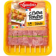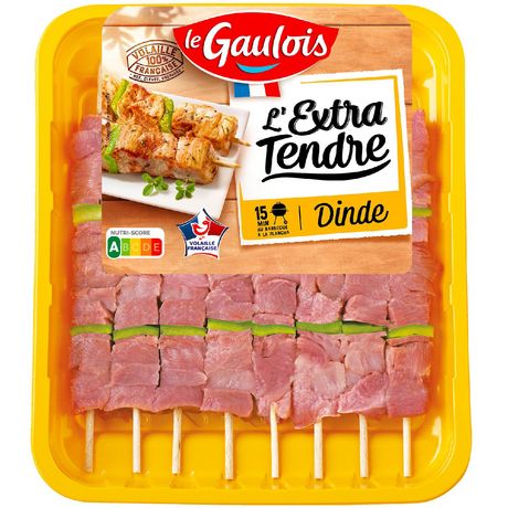 Le Gaulois élabore de délicieuses brochettes de dinde avec des morceaux Extra Tendre pour garantir une texture moelleuse et savoureuse. .