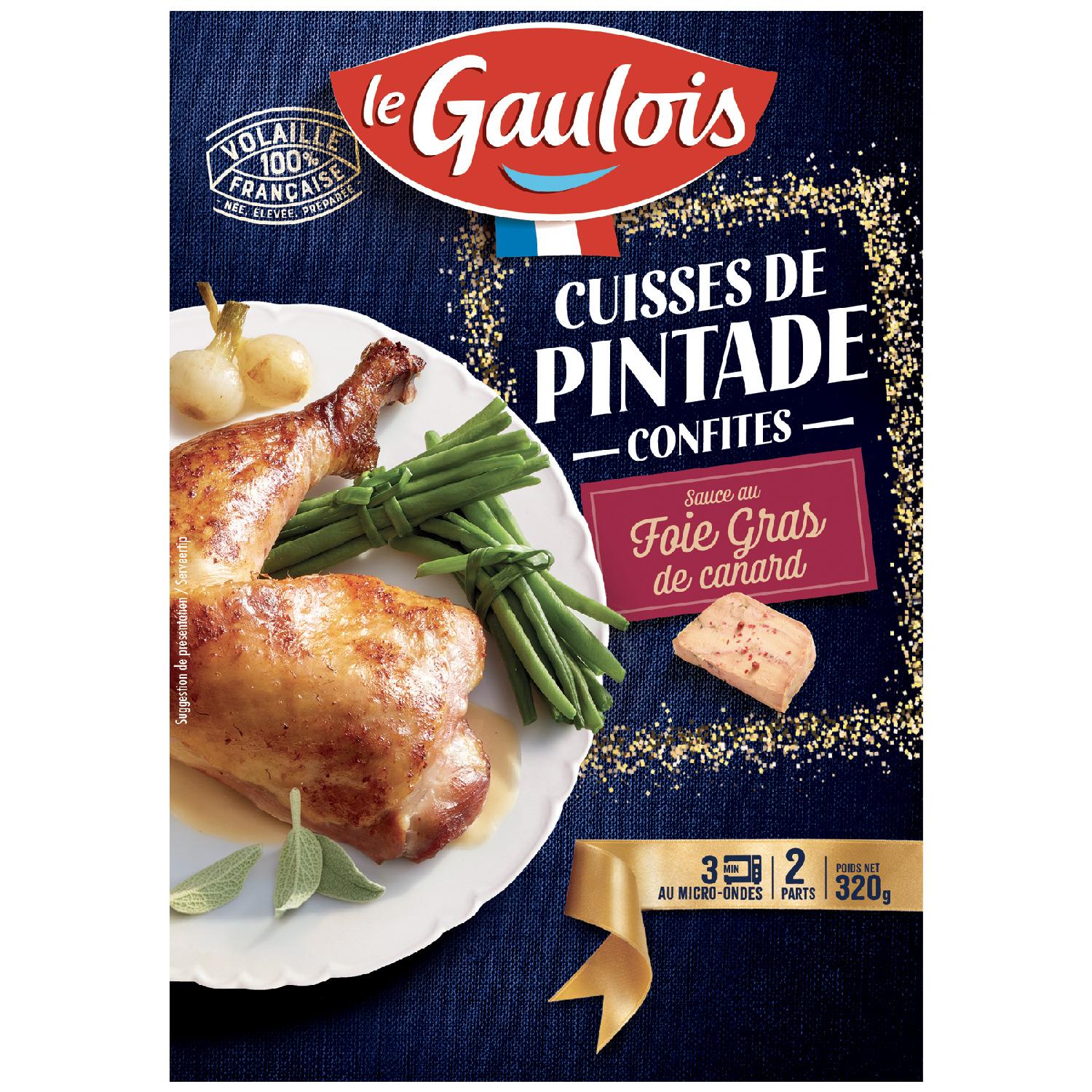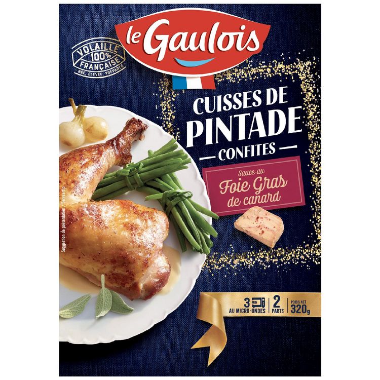 Pour des repas de fêtes d'exception, Le Gaulois a préparé une gamme de produits délicieux et raffinés. Faites plaisir à vos convives avec les Cuisses de Pintade sauce Foie Gras Le Gaulois, mariage subtil d'une volaille noble et d'un ingrédient ultra savoureux.