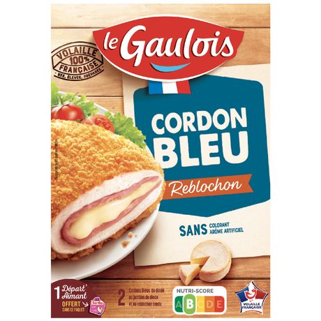 Sous une chapelure croustillante, découvrez une viande de dinde 100% française associée à du Reblochon fondu et une tranche de jambon de dinde. Prêts en 12 minutes au four, les Cordons Bleus sont les complices des mamans ! Une volaille 100% française et une recette sans colorant et sans arôme artificiel.