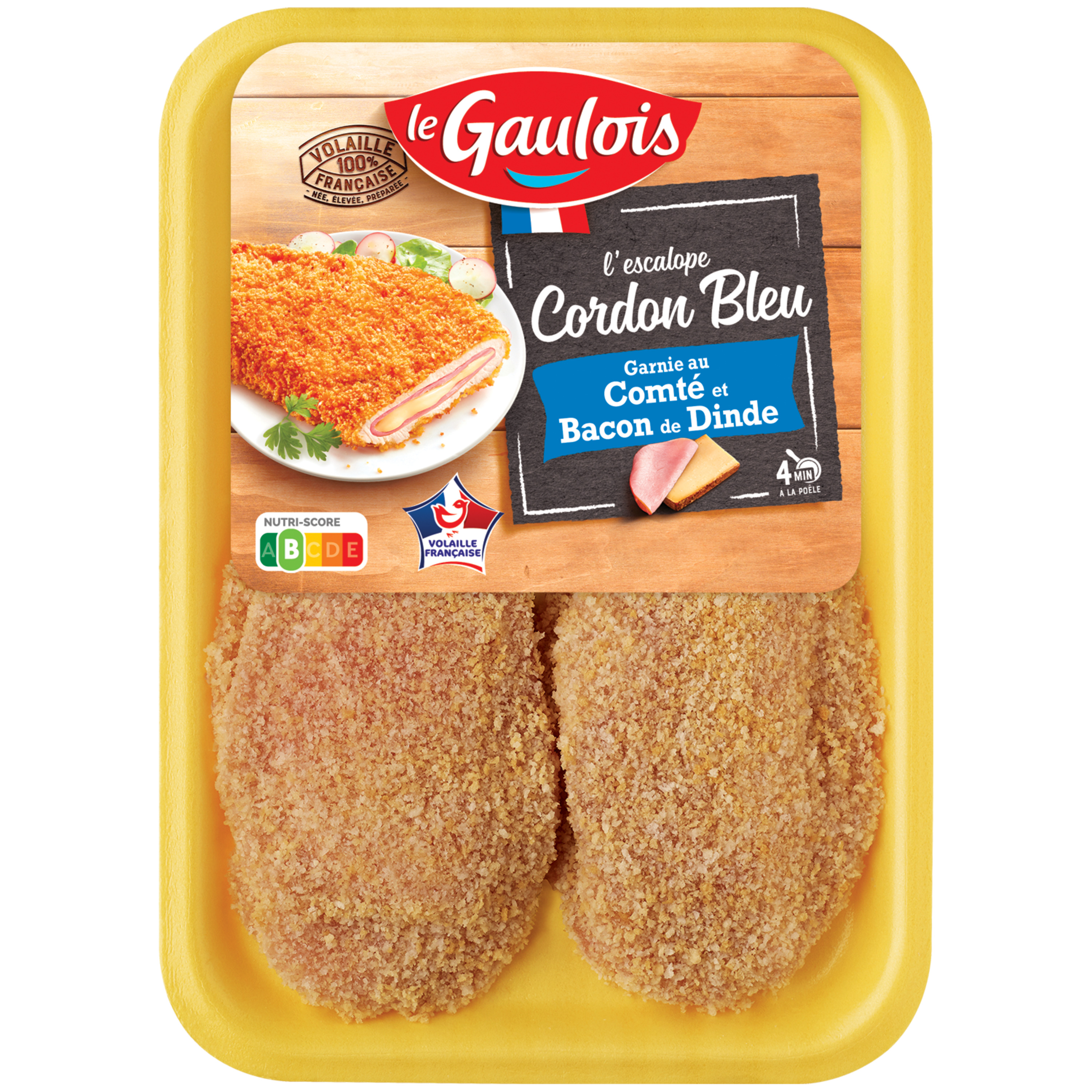 Retrouvez toute la gourmandise du Cordon Bleu en plus authentique ! De fines escalopes de dinde garnies au comté et au bacon, enrobées d’une chapelure croustillante. Pratique, prêt en 4 minutes à la poêle, idéal pour un repas plaisir au quotidien !