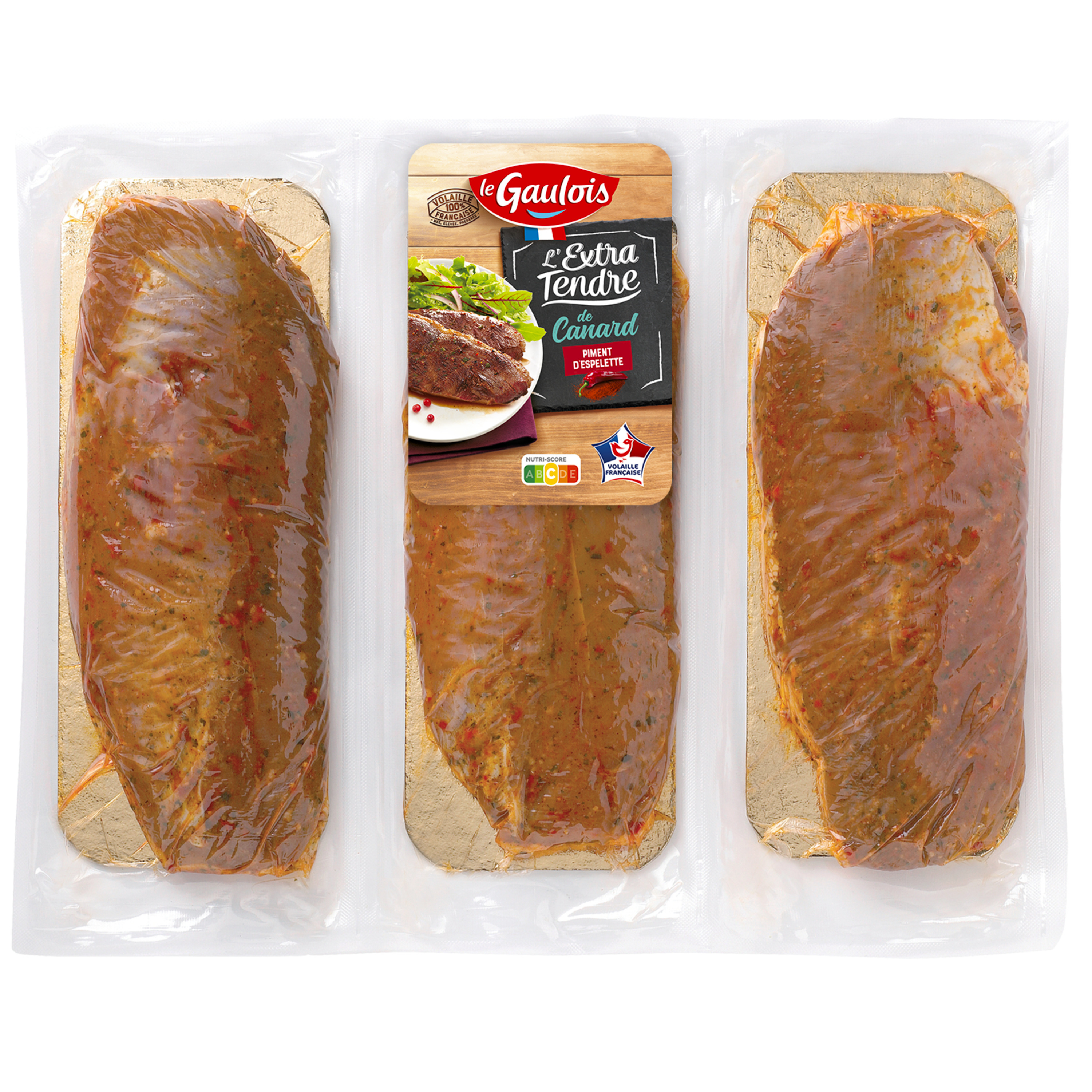 Le Gaulois Brasserie vous propose des filets de canard marinés au piment d'espelette, garantis extra tendres. Déjà assaisonnés, ils seront délicieux après 15 minutes de cuisson à la poêle. Vous pouvez également les cuire au grill ou à la plancha !
