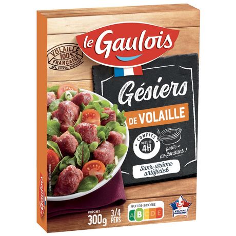 Les gésiers de volaille Le Gaulois, issus de volailles nées, élevées et préparées en France, ont été soigneusement sélectionnés et cuisinés en confit pendant plus de 4 heures, dans le respect des traditions. Des gésiers de volaille qui apporteront Fondant, Saveur et Gourmandise à vos salades.