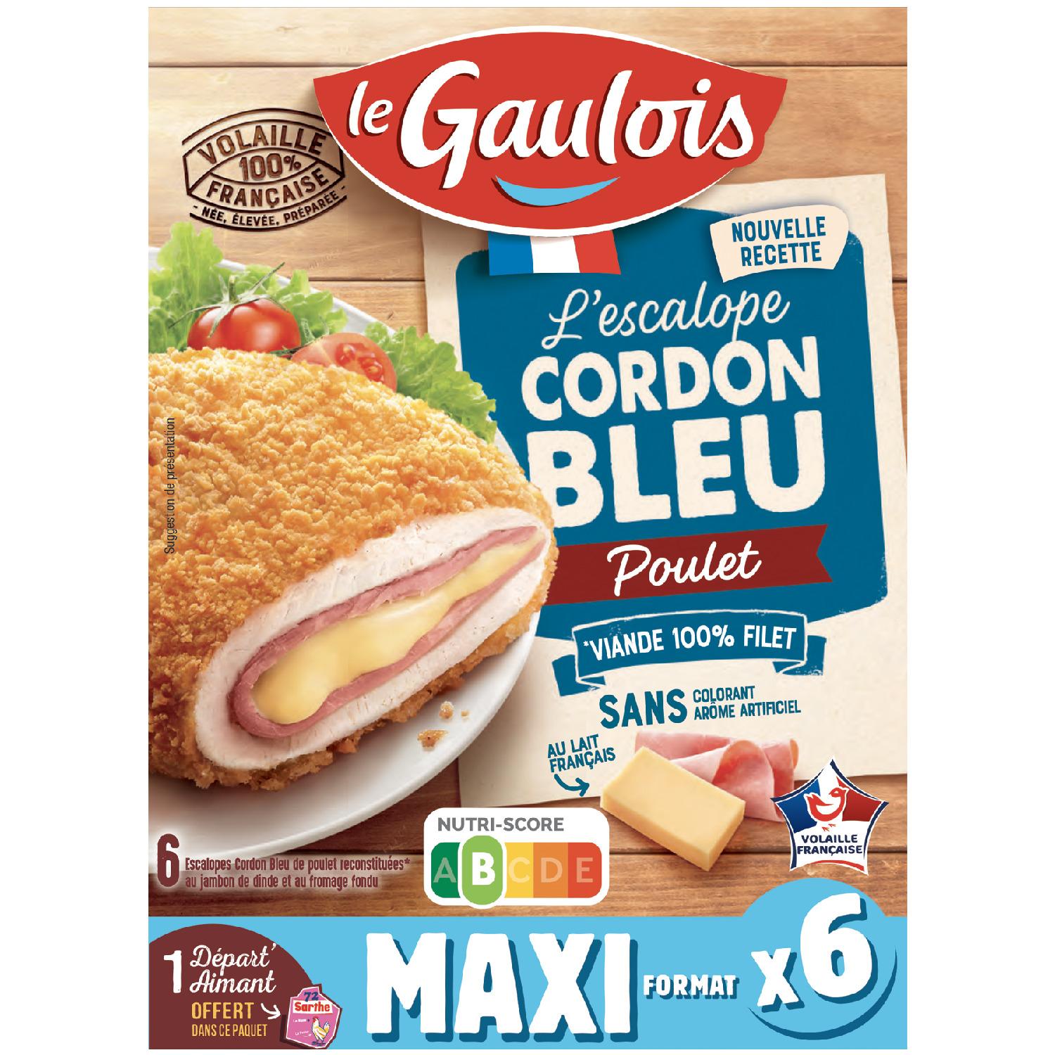 Sous une chapelure croustillante, découvrez une viande d'escalope de poulet associée à du fromage fondu et une tranche de jambon de dinde.