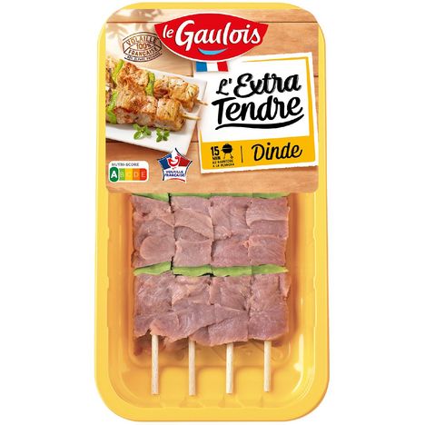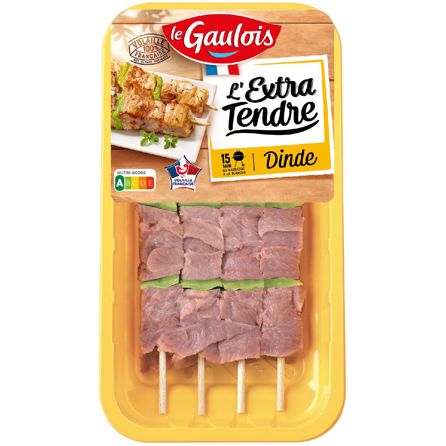 Le Gaulois élabore de délicieuses brochettes de dinde avec des morceaux Extra Tendre pour garantir une texture moelleuse et savoureuse. .