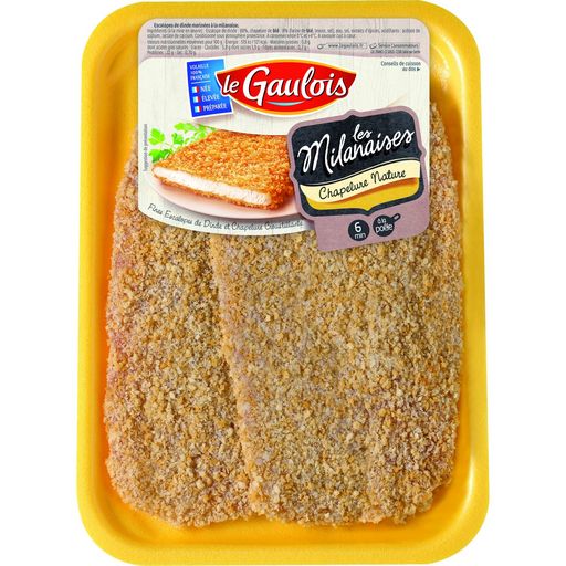 Les Milanaises Le Gaulois sont de fines escalopes de dinde garanties extra-tendres recouvertes d’une chapelure de blé dorée. Croustillantes à l'extérieur et moelleuses à l'intérieur, Les Milanaises sauront satisfaire tous les appétits !
