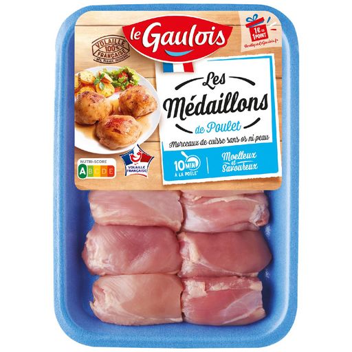 Le Gaulois vous propose les médaillons de poulet, le meilleur de la cuisse de poulet en version pratique pour vos repas quotidiens. Les poulets Le Gaulois sont garantis 100% français : nés, élevés et préparés en France.