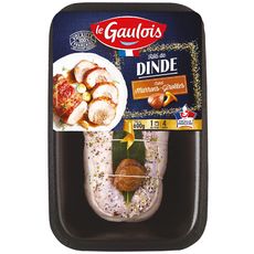 Un rôti de dinde déjà farci et prêt à cuire pour vos repas de fête. Un produit de qualité, façonné à la main et 100% volaille française. Une farce savoureuse composée de marrons et de girolles.