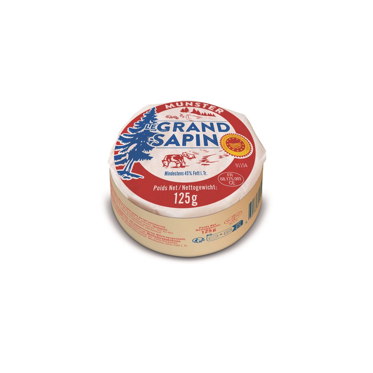 Le Munster, c'est trop fort ! Surpassez les préjugés en vous laissant tenter par le Munster LE GRAND SAPIN, fromage de caractère mais à la saveur si douce en bouche. Ce fromage d'Appellation d'Origine Protégée est affiné 7 jours minimum en caves. Le bon goût d'un fromage alsacien dont la réputation n'est plus à faire.