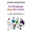 Jambes croisées, lèvres pincées, regard fuyant, mains qui s'agitent. Tout notre corps exprime nos sentiments enfouis et nos angoisses à travers des gestes et des postures. Que cherche à vous dire votre corps ? Que transmettent vos interlocuteurs ? Le langage psy du corps est non seulement un outil de connaissance de soi et des autres, mais également un guide élaboré sur la symbolique du corps. Savez-vous par exemple que le dos est le siège de l'équilibre affectif, le nez, celui du savoir-faire, les pieds et les lobes des oreilles, celui de la sensualité ? Le langage psy du corps vous permettra de décrypter les signaux invisibles (ambiguïtés, peurs, sentiments réels) et vous donnera des informations essentielles pour convaincre, vous adapter et réussir affectivement ou professionnellement.