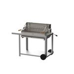 Foyer horizontal avec une grille inox 78*32 cm réglable sur 3 niveauxFoyer vertical avec un tournebroche inox, un moteur électrique force 10 kg (2t/min) et une broche anglaise10 à 14 couvertsCuve et tiroir à cendres en inox mat+Fonctionne au charbon de bois uniquementChariot avec 2 roues et 1 tablet