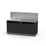 Cuisine 2 éléments avec crédence en inox et acier noir - 160 x 56 x 115 cm