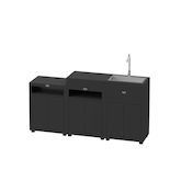Composé de trois modules complémentaires, cet ensemble offre une organisation fluide et fonctionnelle : un espace dédié à la cuisson pour accueillir plancha ou barbecue, un meuble de préparation avec rangements intégrés et un module évier grand format pour laver aliments et ustensiles sur place.