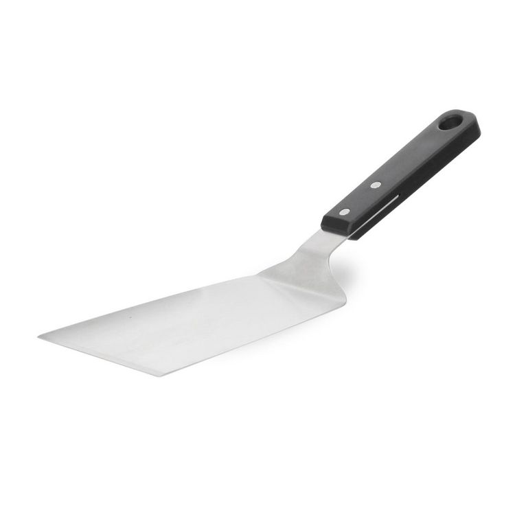 En inox. Idéale pour manipuler les filets de poisson lors de la cuisson à la plancha. Peut-être suspendue.