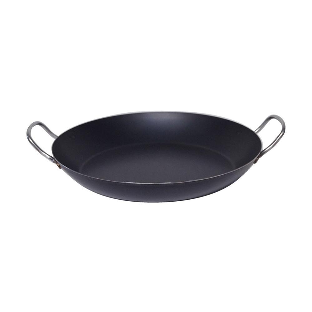 Plat conçu pour la confection de la paella.Multifonction : il peut être utilisé sur le feu, pour la cuisson au four ou encore la présentation sur table.Gamme La Lyonnaise en tôle d'acier bleuie par traitement thermique: protection temporaire contre l'oxydation, aucun revêtement.Epaisseur optimisée:
