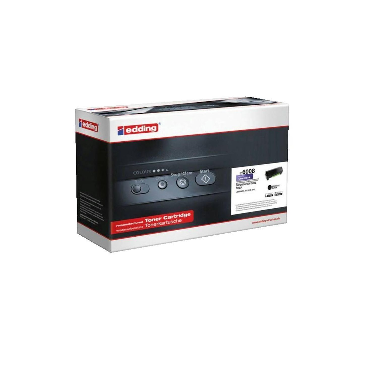 Le toner Edding EDD-6006 est conçu pour garantir des impressions monochromes de haute qualité avec une compatibilité optimale pour de nombreuses imprimantes Lexmark, notamment les modèles MS 310, 410 et 610. Il offre un rendement d'environ 5000 pages, assurant une utilisation prolongée. Fabriqué sel