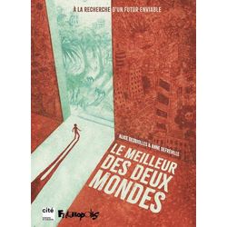 Le meilleur des deux mondes est la bande dessinée officielle de l'exposition permanente Urgence climatique , visible à la Cité des sciences et de l'industrie jusqu'en 2034. Découvrez le récit du voyage scientifique et onirique d'une jeune mère, à la recherche d'un futur désirable à offrir à son fils. Elle ira puiser dans les racines de sa conscience écologique, les savoirs des siècles passés et la connaissance scientifique actuelle afin de trouver la voie de la réconciliation. La médecin de santé publique Alice Desbiolles fut l'une des premières à développer le concept d'éco-anxiété. Pour autant, elle souhaite alerter sur les dérives potentielles de cet état. Aussi invite-t-elle à sortir d'un militantisme écolo trop injonctif pour rester soucieux de la démocratie et du désir d'agir. Si j'avais considéré le combat comme perdu d'avance, je ne serai sûrement pas devenue maman. J'ai résisté aux sirènes du désenchantement. Allons chercher de quoi nous réapproprier notre avenir . Anne Defréville offre de son dessin apaisant une introspection sur nos contradictions face à la planète... Cette BD inspirante et documentée nous emmène des peintures rupestres de la grotte de Pech Merle à la jungle amazonienne, en passant par les marchés provençaux et les grands musées scientifiques du pays. Avec les interventions (plus ou moins volontaires) de Romain Gary, un dodo, Alexandre de Humboldt (naturaliste, géographe et explorateur), Aimé Bonplant (botaniste), Alexandra David-Néel (orientaliste, écrivaine, féministe), Doc Endoc, Sophie Dubuisson-Quellier (sociologue), Adrien Stalter (co-commissaire de l'exposition), Philippe Bihouix (spécialiste des ressources minérales et promoteur de slow-tech), Laurent Hazard (Directeur de Recherche en Agroécologie), un moine tibétain et bien d'autres... Album réalisé en coédition avec la Cité des Sciences.