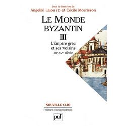 1204 : prise de Constantinople par les Croisés , 1453 par les Turcs. Entre ces deux grandes dates, le troisième et dernier volume du Monde byzantin retrace le crépuscule de l'empire grec, de son poste avancé, Trébizonde et de ses voisins serbes, bulgares ainsi que des « Latins » installés sur son territoire à la suite de la IVe croisade. Cette histoire d'un espace fragmenté est étudiée ici dans toutes ses composantes, y compris turque. On y voit l'ancienne grande puissance du XIIe siècle désormais un simple État grec, perdre ses territoires d'Anatolie, puis de Grèce du Nord, devenir dès 1373 vassale du sultan ottoman, réduite à Constantinople et au Péloponnèse, sa survie dépendant du bon vouloir turc ou du soutien intéressé de Gênes et de Venise plus que de rares croisades souvent avortées. L'Union des Eglises grecque et latine à Lyon (1274) puis à Florence (1439), conclue par les empereurs dans l'espoir de sauver Byzance, fut refusée par la plupart des orthodoxes et n'eut aucun effet. L'autorité du patriarche l'emporta définitivement sur celle de l'empereur. Mais cet appauvrissement de l'État, accentué par la Peste noire et la récession du XIVe siècle avec son cortège de conflits sociaux, contraste avec la prospérité de certains. Car paradoxalement Byzance participe au développement économique, artistique et culturel de l'Occident. Elle le précède même : ses techniques (soie, verre) y sont transférées, ses intellectuels redécouvrent et transmettent aux humanistes l'héritage grec et ses artistes influencent la peinture italienne du Trecento. Le traumatisme de la IVe croisade empêcha toute fois toute fusion. L'identité byzantine perdit son universalisme pour se réduire à deux traits : l'hellénisme et l'orthodoxie,qui permirent au grec de survivre.
