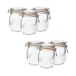 Ce lot de 6 bocaux Le Parfait 1L en verre vous permettront de conserver les meilleures recettes de soupes, fruits au sirop, légumes et autres plats cuisinés. Sa forme arrondie et légèrement bombée pourra accueillir n'importe quel aliment. Les bocaux Le Parfait se distinguent avec leur monture métall