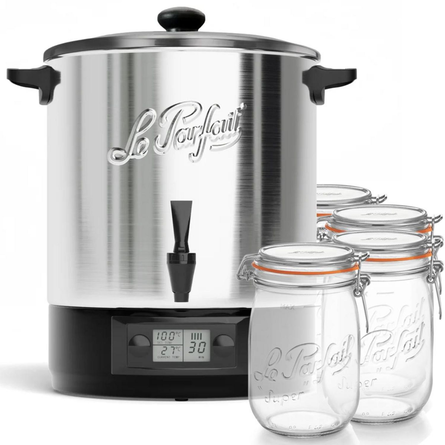 Le Parfait LPF.STV23INA Conçu pour simplifier toutes vos opérations de conservation, le stérilisateur électrique automatique Le Parfait® offre une capacité généreuse de 23 litres dans une cuve en inox brillant, pour accueillir plusieurs bocaux en une seule session.Doté de poignées thermo-isolantes,