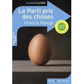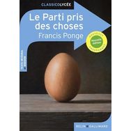 Dossier pédagogique d'Olivier Rachet Francis Ponge pose un regard neuf sur le monde qui nous entoure. Il nous invite à redécouvrir, à travers trente-deux poèmes en prose, les choses les plus banales : le galet, le pain, la bougie, l'orange. Utilisant avec virtuosité toutes les ressources du langage, le poète célèbre la nature et nous donne avec humour une belle leçon d'humilité. Groupements de textes : 1. Poèmes en prose (XIXe-XXe siècles) 2. Poésie et peinture (XIXe-XXe siècles)