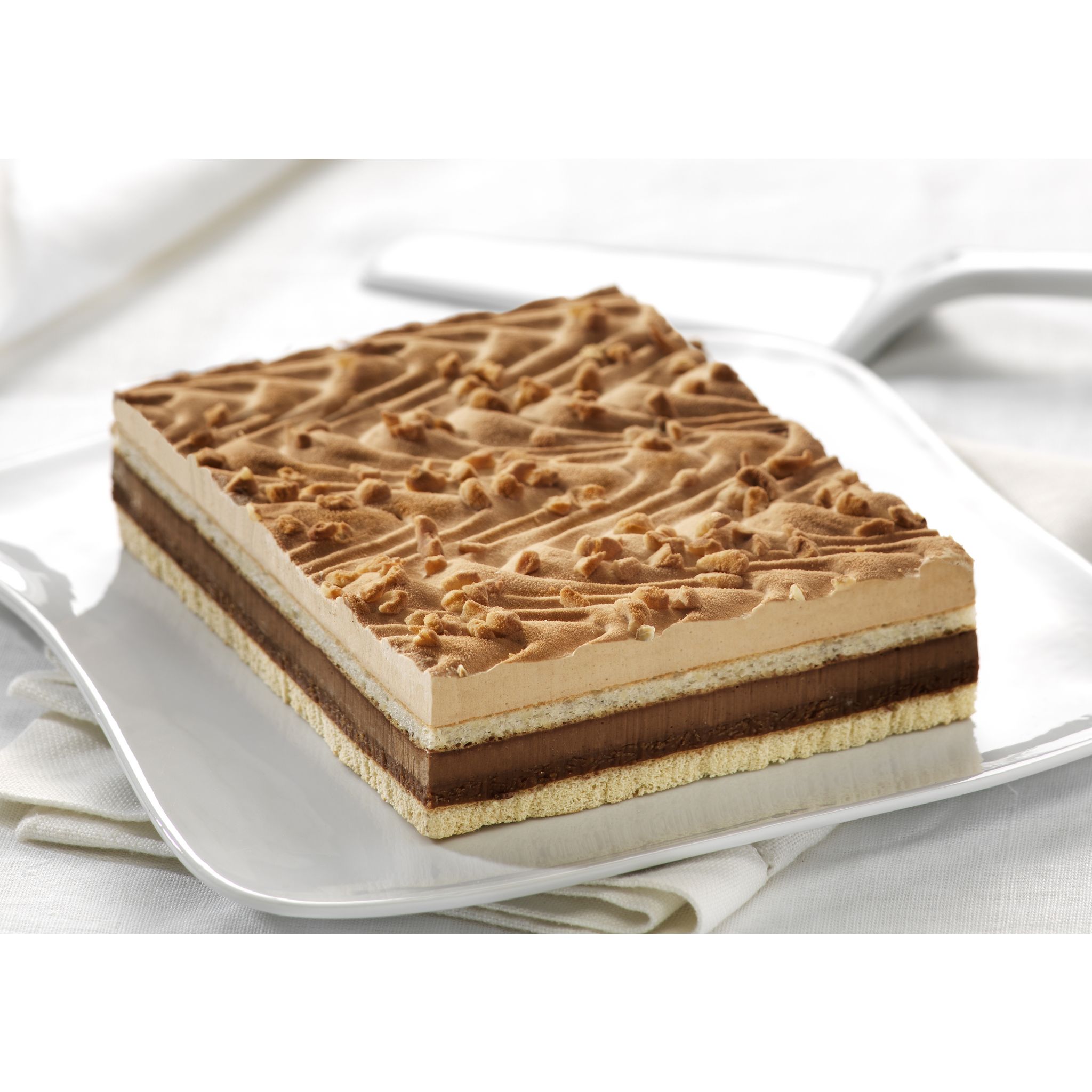 Ingrédients : CREME UHT (CREME, stabilisant: E407), chocolat de couverture au LAIT 15,11%(sucre, beurre de cacao,poudre de LAIT entier, pâte de cacao, émulsifiant: lécithine de SOJA, arôme naturel de vanille), eau, sucre,blanc d'OEUF, pâte de NOISETTE 6,68%, farine de BLE, huile de tournesol, brisures de crêpe dentelle3,35%(farine de BLE, sucre, BEURRE concentré, huile de tournesol, LAIT écrémé en poudre, maltd'ORGE, sel), chocolat noir 2,73%(pâte de cacao, sucre, beurre de cacao, émulsifiant: lécithine de SOJA),jaune d'OEUF, sucre glace (sucre, amidon), poudre de LAIT entier, NOISETTE hachée grillée 1,52%,BEURRE, poudre d'AMANDE 0,58%, amidon de maïs, gélatine de boeuf, poudre de blanc d'OEUF (blancd'OEUF, agent moussant: E1505), beurre de cacao, sel (sel, antiagglomérant : E535), arôme naturel devanille (dont épaississants : E414, E413, E415)