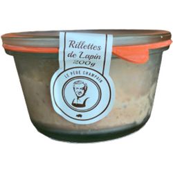 Ingrédients : Lapin (50%), Viande de porc, gras de porc, vin de Montlouis (2,7%), Sel (conservateur : E250), Poivre, colorant E150b, Thym.