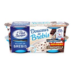 Spécialité laitière à base de lait de brebis et de perméat de lait de brebis à la vanille avec des copeaux de chocolat