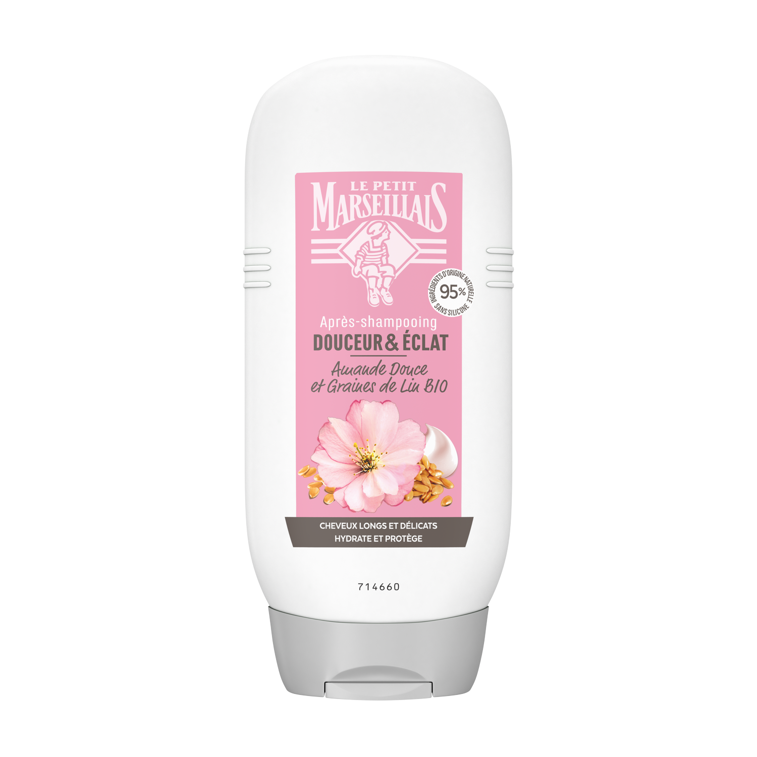 LE PETIT MARSEILLAIS APRES-SHAMPOOING DOUCUEUR ET ECLAT 200ML NOTRE RECETTE DE SOIN Pour apporter tout l’éclat du soleil dans vos cheveux, le Petit Marseillais a développé une recette de soin unique pour hydrater, protéger et illuminer vos cheveux longs aux pointes fragiles.