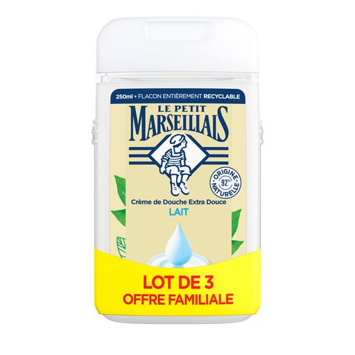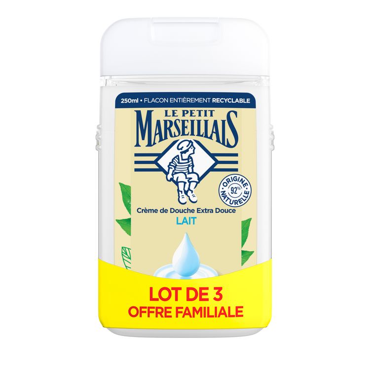 Encore plus naturels et qui sentent toujours aussi bon! Le Petit Marseillais débute son histoire dans le sud de la France. Inspiré par la Provence et avec son envie irrésistible de vous faire plaisir, il crée ses gels douches Extra Doux. Issu de l’Amande Douce, le lait végétal libère un parfum aux notes délicates et réconfortantes. 92% d'ingrédients d'origine naturelle, pH neutre pour la peau et sans colorant