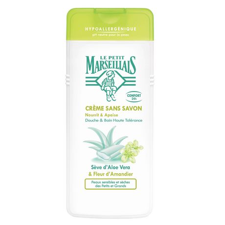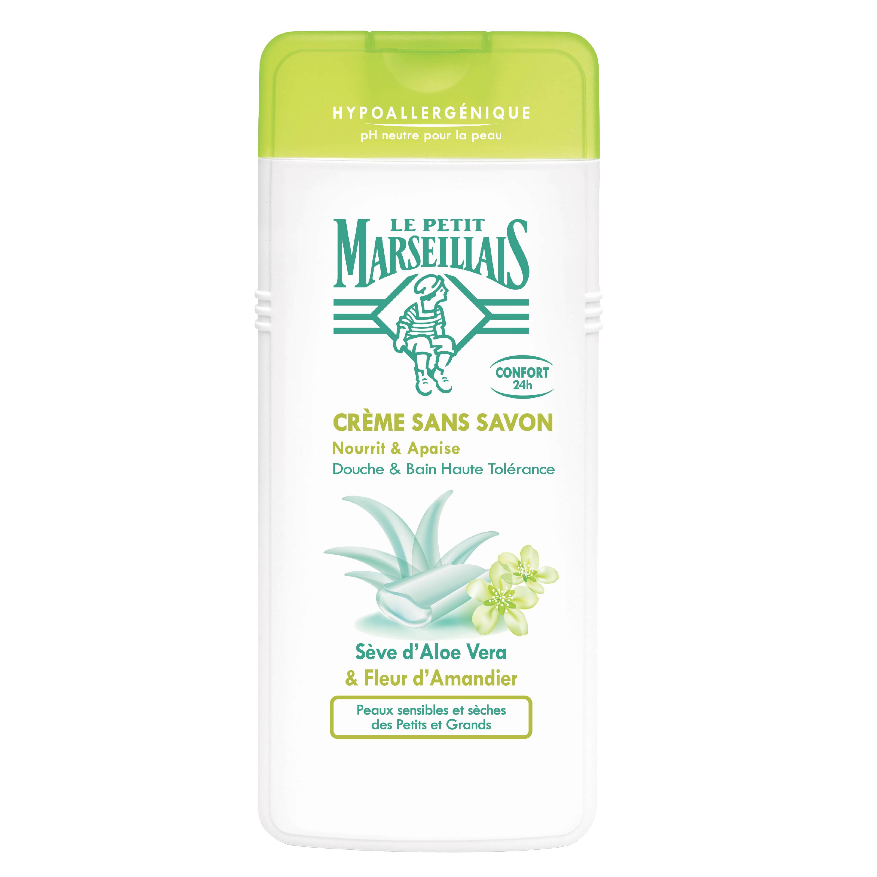 Crème douche et bain sans savon sève d'aloé vera et fleur d'amandier peaux sensibles