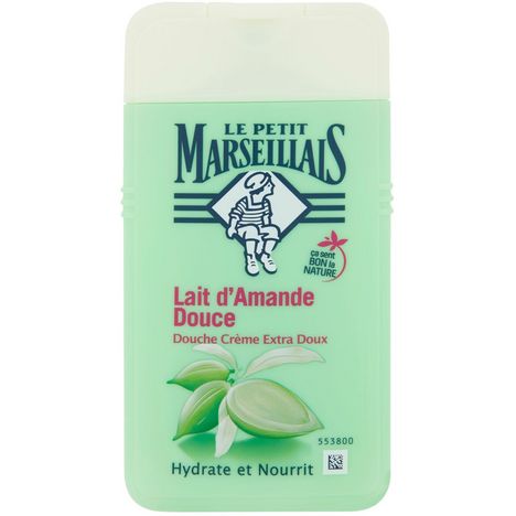 LE PETIT MARSEILLAIS DOUCHE CREME EXTRA DOUX LAIT D'AMANDE DOUCE 250ML - Le Lait d'Amande Douce du Petit Marseillais L'amandier est un des premiers arbres à fleurir sous le soleil méditerranéen. C'est au printemps que de délicates fleurs blanches apparaissent pour donner naissance à des amandes qui attendront d'être récoltées à la fin de l'été. C'est à partir de ces amandes que l'on obtient le lait d'amande douce, au parfum délicat. - Une Formule Extra Douce pour la Peau La Douche Crème au Lait d'Amande Douce du Petit Marseillais lave en douceur votre peau, grâce à sa mousse légère qui libère un parfum doux et enveloppant. • pH neutre pour la peau • Testé sous contrôle dermatologique • Ingrédients de la base lavante facilement biodégradables • Enrichi en agent hydratant d'origine végétale.