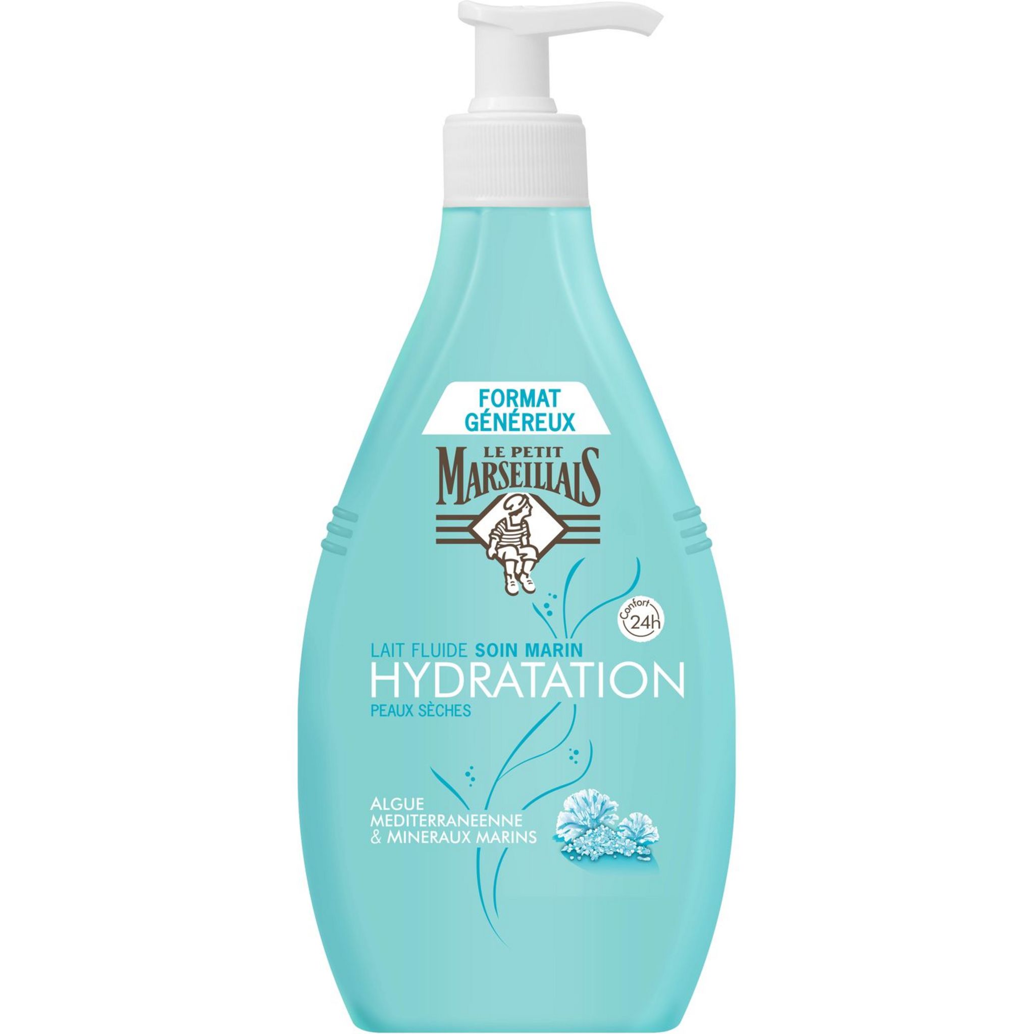 LE PETIT MARSEILLAIS LAIT HYDRATANT PEAU SECHE SOIN MARIN ALGUE&MINERAUX Lait Soin Marin Hydratation Peaux Sches Confort 24H Algue Méditerranéenne & Minéraux Marins Avec sa texture fluide Parfum marin frais, parfum pétillant, frais, aux notes salées énergisantes La peau est belle, douce & hydratée pour 24h de confort.