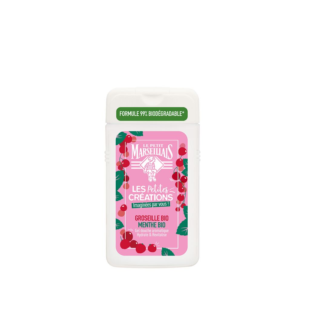 Le Gel Douche & Bain Les Petites Créations à la Groseille Bio et à la Menthe Bio du Petit Marseillais hydrate et revitalise votre peau en douceur. Ce gel douche délicieusement parfumé a été créé avec la communauté Le Petit Marseillais. Ce geste nature, au pH neutre pour la peau, est testé sous contrôle dermatologique. Vous ferez également un geste pour l’environnement grâce à sa formule végan, avec 99% d’ingrédients biodégradables et à son flacon 100% recyclable. LE PETIT MARSEILLAIS GEL DOUCHE LES PETITES CREATIONS GROSEILLE BIO & MENTHE BIO 250ML