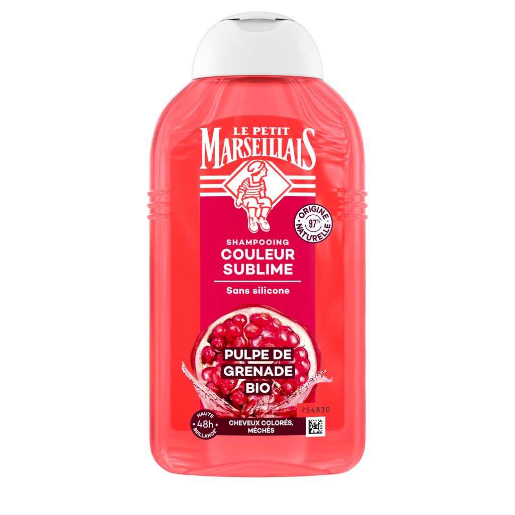 Découvrez notre Shampooing couleur sublime. Sa recette authentique contient de la Pulpe de Grenade BIO, réputée pour ses propriétés hydratantes contribuant à révéler l'éclat. 48H haute brillance grâce à notre formule au pH optimal pour la fibre capillaire."
