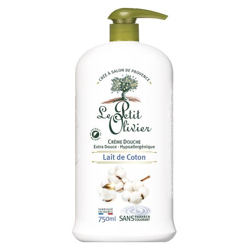 Offrez-vous un véritable moment de plaisir et de soin avec la crème douche Le Petit Olivier enrichie au lait de Coton. Idéale pour les peaux fragiles de toute la famille*, elle respecte et nettoie votre peau en douceur sans la dessécher. Sous la douche ou dans le bain, la crème douche Le Petit Olivier au Lait de Coton libère une mousse au parfum doux et enveloppant qui saura séduire toute la famille. *enfants à partir de 3 ans. Cette crème douche au format généreux et à la mousse onctueuse, nettoie et hydrate la peau en douceur.
