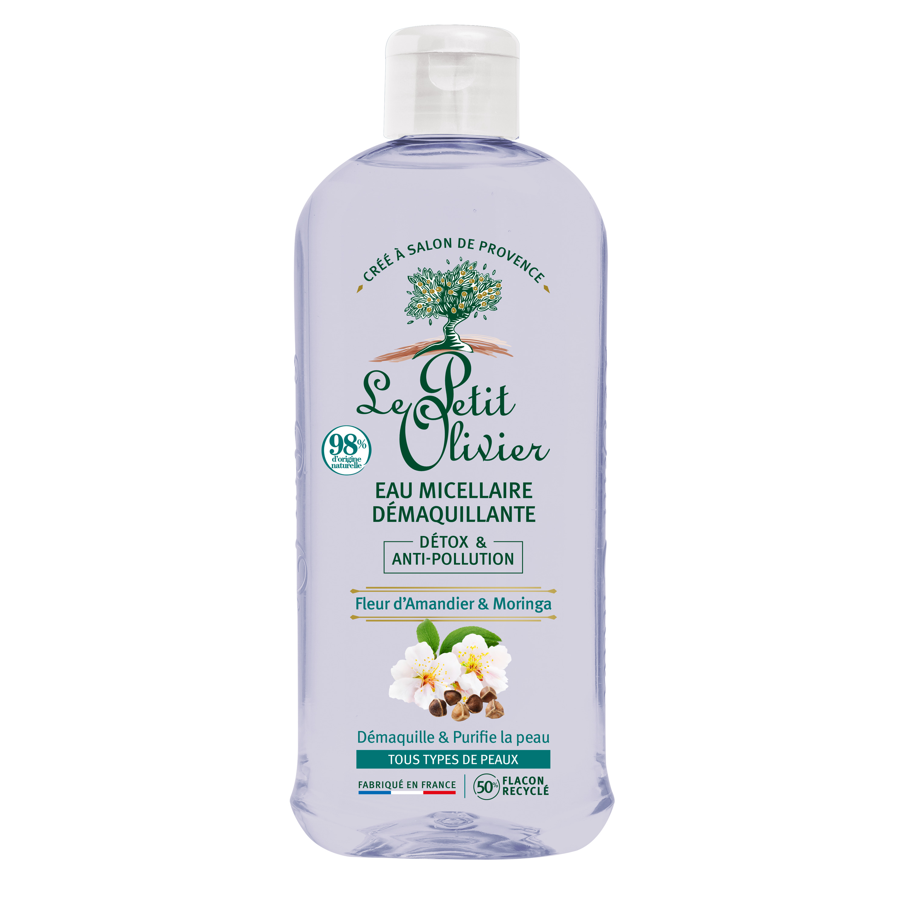 Enrichie en extraits de Fleur d'Amandier et de Moringa, l'Eau Micellaire Anti-Pollution Le Petit Olivier démaquille, nettoie et purifie la peau des particules de pollution accumulées au cours de la journée. Véritables actifs nettoyants, les micelles contenues dans la formule agissent comme des aimants pour emprisonner les impuretés. Les traces de maquillage même waterproof sont éliminées. Délicatement parfumée, la peau est purifiée, éclantante et apaisée.