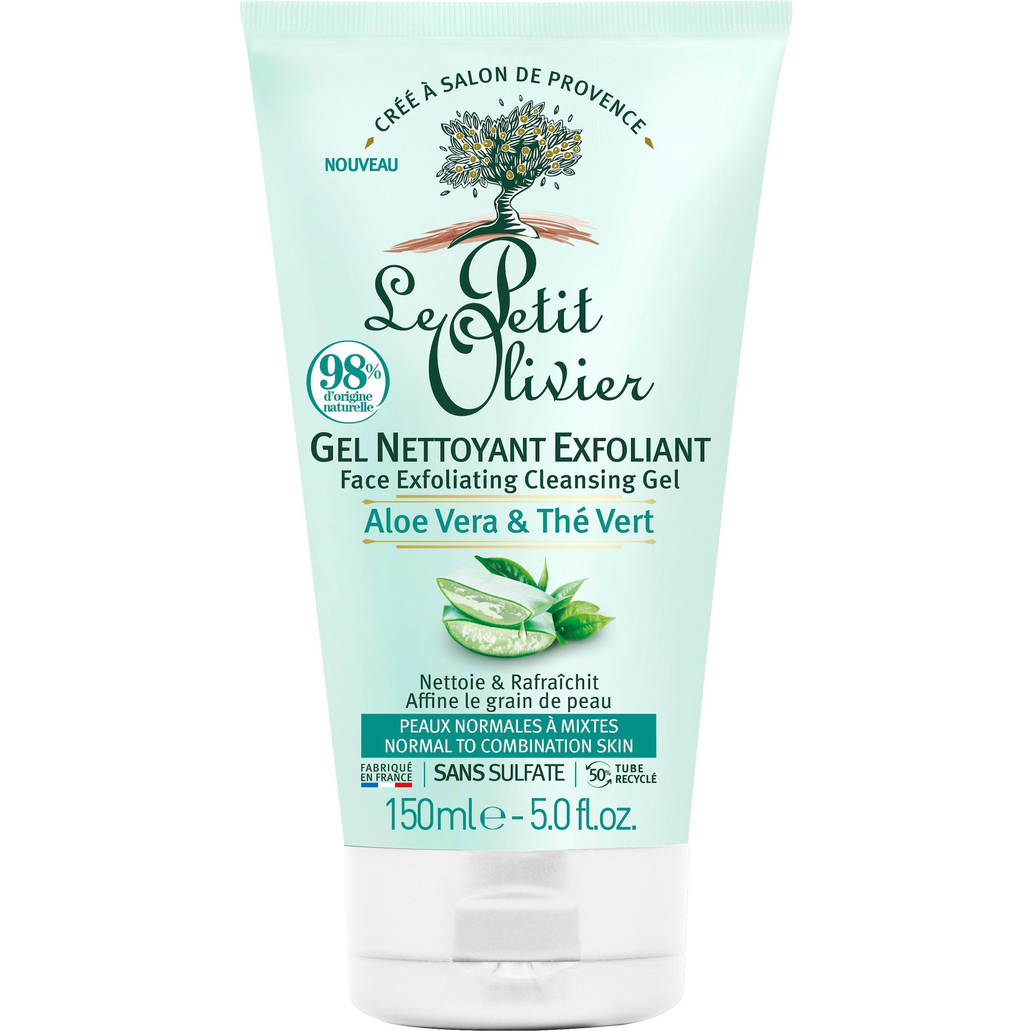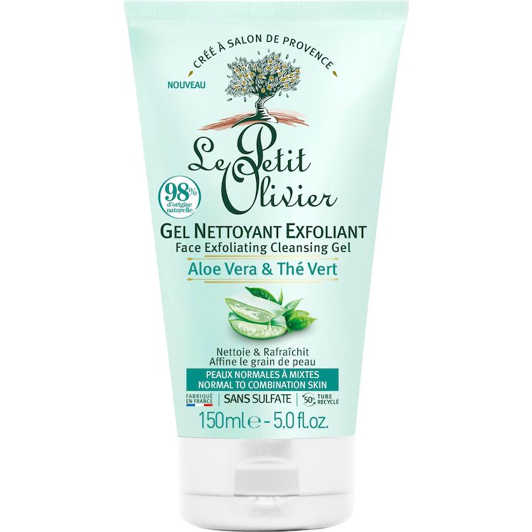 Gel nettoyant exfoliant à l'aloé véra et thé vert peaux normales à mixtes