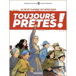 Découvrez le spin-off de la série du Petit théâtre des opérations, qui met à l'honneur le destin de femmes d'exception oubliées des deux Guerres mondiales. Saviez-vous que les Allemands avaient affronté un régiment de sorcières durant la Seconde Guerre mondiale ? Ou que l'armée serbe en 1914 comptait dans ses rangs Milun , la Mulan locale, qui faisait régner la terreur à coups de grenades ? Et quid de Marie Marvingt, qui a été tour à tour soldat, infirmière, et qui pilotait encore un hélicoptère à réaction à 86 ans ? Ca ne vous dit rien, ou si peu ? Avec Toujours Prêtes ! de Virginie Augustin et Julien Hervieux, vous allez pouvoir corriger cela, et bien plus encore. Car si l'on parle souvent des femmes de pouvoir et des militantes qui ont fait la Grande Histoire, les combattantes qui sont allées au feu, elles, restent toujours dans l'ombre. Avec ce tome spécial du Petit Théâtre des Opérations, série dédiée aux histoires méconnues des deux guerres mondiales, les auteur·e·s mettent un coup de projecteur sur des destins oubliés, des injustices absurdes et surtout... sur des femmes qui, quand l'Histoire a frappé à leur porte, ont répondu d'une seule voix : Toujours Prêtes !