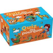 Une boîte renfermant un jeu de type Quiz, constituée de : 100 cartes réparties en 7 thèmes (animaux, environnement, sciences et découvertes, expressions bizarres, la Terre, corps humain, nature), avec, sur chacune, une question (soit un QCM, soit une question Défi ) , 1 livret de 128 pages comportant les règles du quiz et les réponses aux 100 questions. Pourquoi le cheval dort parfois debout ? Pourquoi il y a écrit BIO ? Pourquoi dit-on il fait un froid de canard ? .