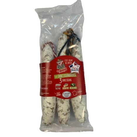 Lot de 3 saucissons de 120g fabriqué à base de viande de porc français dans les Alpes de Haute Provence. Idéal pour varier les saveurs à l'apéritif.