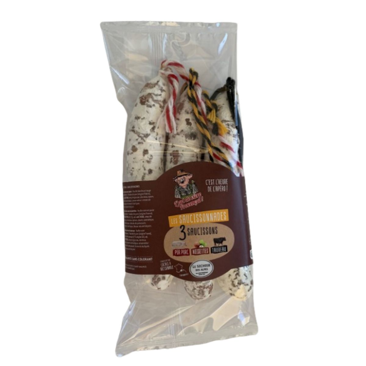 Ingrédients: Viande de porc (origine France), NOISETTES (4,5%), sel, LACTOSE, sirop de glucose, dextrose, épices, plante aromatique, conservateur: nitrate de potassium, ferments lactiques. Boyau naturel de porc