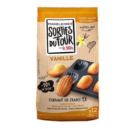 IMAGINEZ VOUS EN TRAIN DE DEGUSTER TRANQUILLEMENT NOTRE DELICIEUSE MADELEINE SORTIES DU FOUR PAR LE STER A LA VANILLE. UNE RECETTE AVEC DE BONS INGREDIENTS FRANCAIS : DE LA FARINE DE BLE CRC (Culture Raisonnée et Contrôlée), DU LAIT FRAIS ET DES OEUFS DE POULES ELEVEES EN PLEIN AIR.