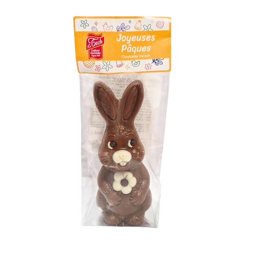 Un lapinou tout mimi tout doux avec sa petite fleur sur le bidou! Il est en chocolat au lait 32% de cacao, décoré et emballé à la main.