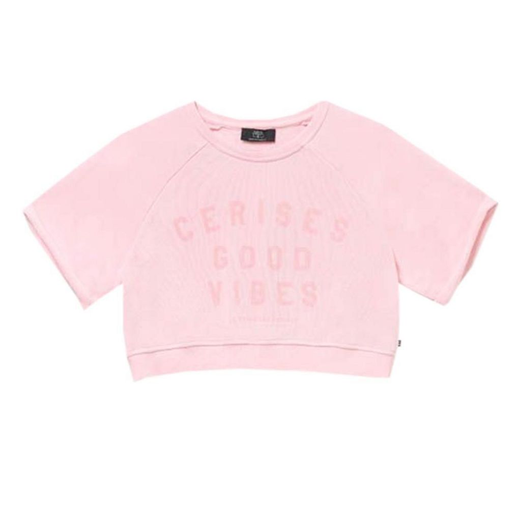 Craquez pour le sweat fille de la marque Le Temps des Cerises Manches courtes Sans capuche Col rond Sweat court Coloris : Rose Inscription sur le devant du sweat Composition : 60% coton, 40% polyester