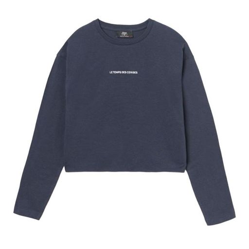 Optez pour le t-shirt fille de la marque Le Temps des Cerises !Manches longuesCol rondColoris : MarineInscription sur l'avantComposition : 100% coton