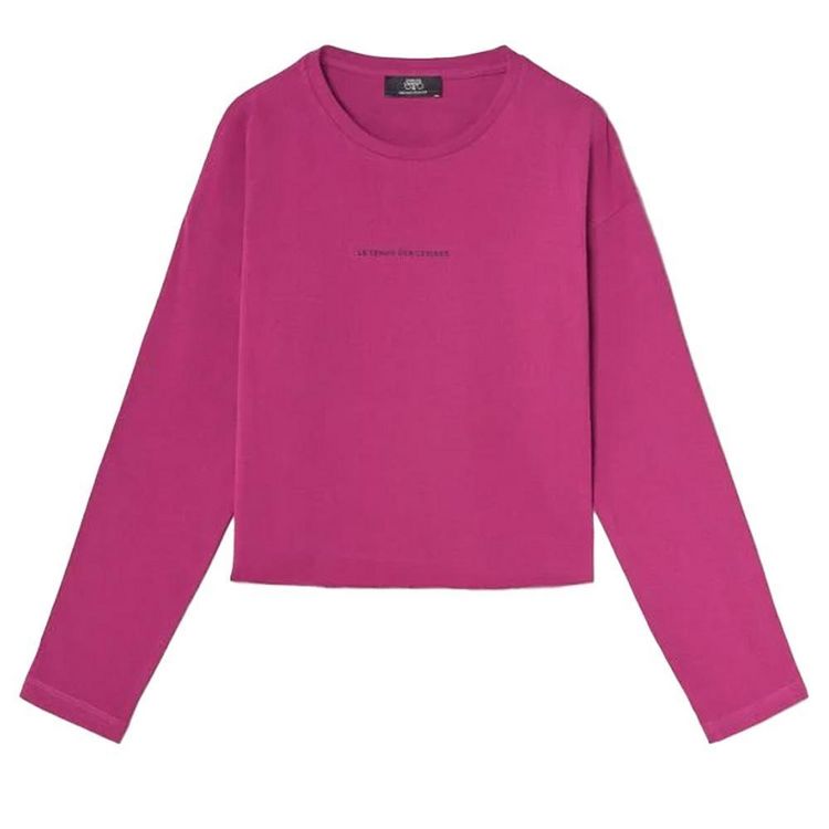 Optez pour le t-shirt fille de la marque Le Temps des Cerises !Manches longuesCol rondColoris : VioletInscription sur l'avantComposition : 100% coton