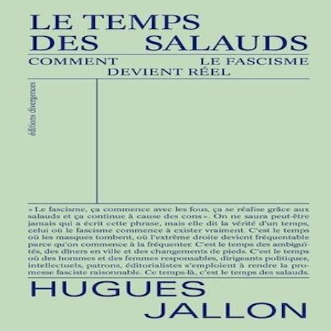 Le fascisme, ça commence avec les fous, ça se réalise grâce aux salauds et ça continue à cause des cons . On ne saura peut-être jamais qui a écrit cette phrase, mais elle dit la vérité d'un temps, celui où le fascisme commence à exister vraiment. C'est le temps où les mots, les idées et les valeurs de l'extrême droite ont colonisé le discours public. C'est le temps où l'extrême droite devient fréquentable parce qu'on commence à la fréquenter - et à parler la même langue qu'elle. C'est le temps des ambigüités, des dîners en ville et des changements de pieds. C'est le temps où des hommes et des femmes responsables, dirigeants politiques, intellectuels, patrons, éditorialistes s'emploient à rendre la promesse fasciste raisonnable. Ce temps-là, c'est le temps des salauds.