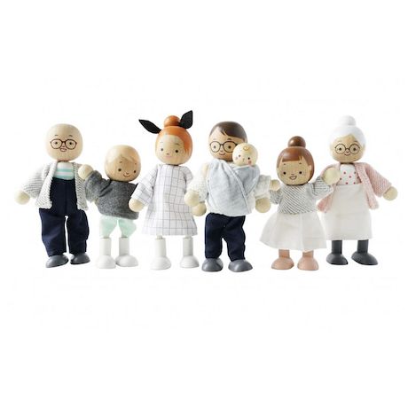 Cet adorable ensemble familial de poupées comprend 7 poupées très détaillées, pouvant prendre la pose. Fabriquées en bois durable certifié FSC et habillées de magnifiques tenues finies à la main. Compatible avec notre gamme complète de belles maisons de poupées en bois et d'accessoires.