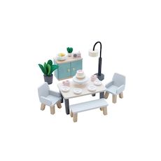 Ajoutez une touche d'élégance moderne à votre maison de poupée avec cet ensemble de meubles de salle à manger de 18 pièces, élégant et durable. Parfait pour recevoir les mini invités à dîner, il est fabriqué avec amour à partir de bois certifié FSC et compatible avec la gamme de superbes maisons de