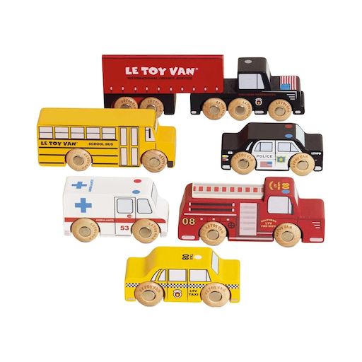 Ce coffret de 6 véhicules américains emblématiques en bois FSC ravira les petits fans de voitures. Peints à leau, ils sont sans plastique et sûrs pour les enfants.
